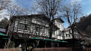 旧軽井沢からさらに北側、白糸の滝に続く坂道を登ると洒落た洋館が現れます。