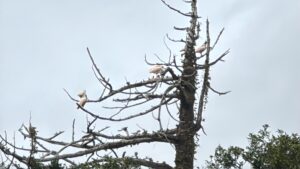幸いにも原っぱのきの上の数羽の朱鷺を見ることができました。